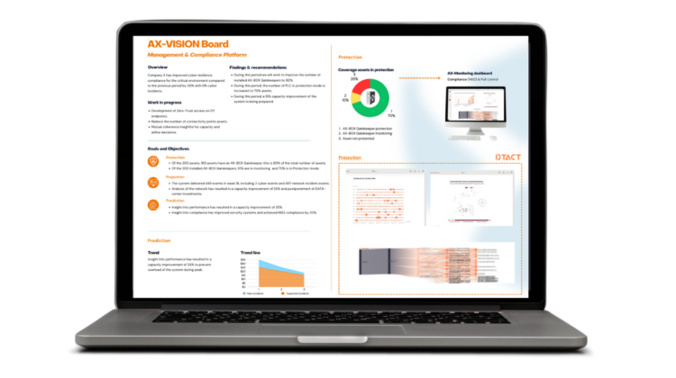 Door verdachte activiteiten te detecteren en onmiddellijk te reageren, kunnen organisaties potentiële bedreigingen effectief aanpakken en de risico’s minimaliseren die gepaard gaan met het beheren van gevoelige operationele data. Op deze manier speelt het AX-Vision Board een cruciale rol bij het handhaven van de integriteit en veiligheid van OT-systemen, vooral binnen het kader van Zero Trust-programma’s voor verouderde endpoints. Bovendien kunnen organisaties exact zien hoever ze zijn in het compliancy proces, waardoor ze exact kunnen aantonen hoe compliant ze zijn. Wetgeving zoals NIS2 vereist dat essentiële en belangrijke entiteiten passende technische en organisatorische maatregelen nemen om de veiligheid van operationele systemen te waarborgen.