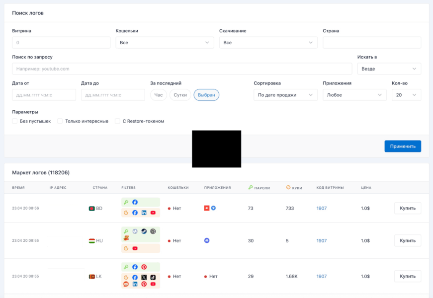 De gestolen inloggegevens die door de Lumma-beheerders werden verzameld, de zogenaamde ‘logs’, werden geparsed en geïndexeerd voor Lumma’s eigen marktplaats. Daar konden criminelen credits met cryptocurrency kopen en op zoek gaan naar lucratieve inloggegevens. De logs van Lumma werden ook door andere criminelen verzameld die de toegang tot hun collecties via Telegram verkochten.