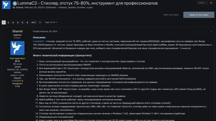 Exploit-lid Shamel plaatste de originele verkoopthread namens LummaC2