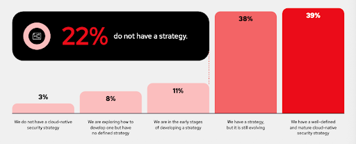 Een opvallend inzicht is de kloof tussen zelfperceptie en werkelijkheid. De helft (56%) omschrijft de huidige cloudaanpak als sterk proactief, maar slechts 39% heeft daarvoor ook een goed gedefinieerde cloudstrategie. Ongeveer 22% opereert zonder enige strategie, met voorspelbare gevolgen op het gebied van security. Organisaties met een volwassen strategie rapporteren 61% vertrouwen in de security van hun softwaretoeleveringsketen – een stuk hoger dan de rest.