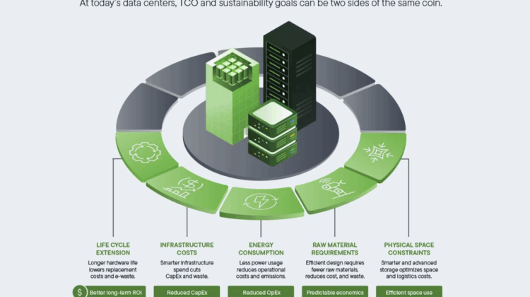 Naarmate organisaties hun datacapaciteiten uitbreiden, staan ze voor drie opties: de efficiëntie binnen de bestaande infrastructuur verbeteren, de datacenterfootprint uitbreiden of workloads naar de cloud migreren. Elke optie is een afweging tussen kosten, CO2-uitstoot en beheer. Dit geeft aan dat de TCO en duurzaamheid verenigbare doelen kunnen zijn. Beslissingen over energieverbruik, ruimtegebrek, grondstofgebruik en infrastructuurinvesteringen hebben nu invloed op zowel bedrijfsprestaties als het milieu.